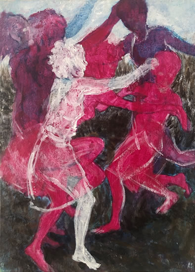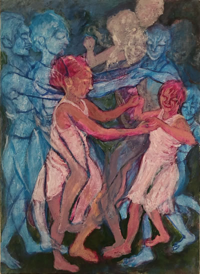 絵の中で踊るように見える2人。描き進むうちに内外から自分や他者の姿が出てきた。