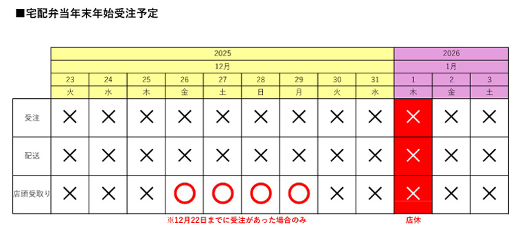 ※水曜日のご予約および配送はお承りできません。- 配送受取りのみ