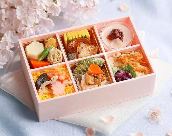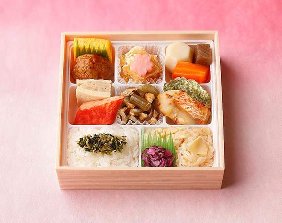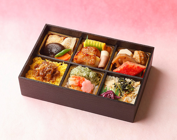ちらし寿司(60g)、筍ごはん(80g)、焼物、揚物、煮物、甘味(※洋酒を使用しています)など- ご来店または配送受取り