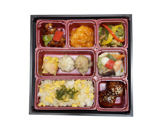 炒飯(150g)、海老チリ、酢豚、八宝菜、丸餃子、青椒肉絲、肉団子の甘酢、肉えび焼売、えび焼売