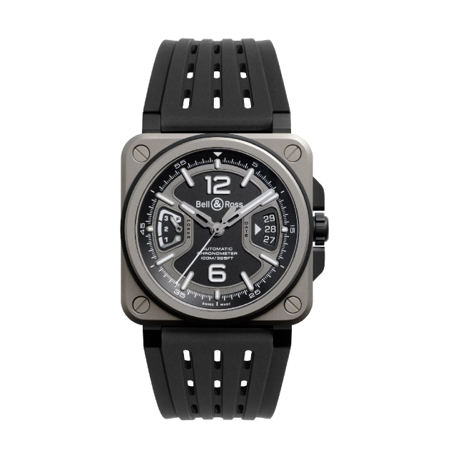 ブラックセラミック・チタンケース、42mm、自動巻き、44時間パワーリザーブ、5気圧防水、ラバー製ストラップ