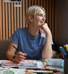 湖水地方に暮らし、登山ガイドとイラストレーターの二つの顔を持つケイト。カントリーサイドの自然から受けたインスピレーションを、カラフルな色彩やタイポグラフィーで表現しています。