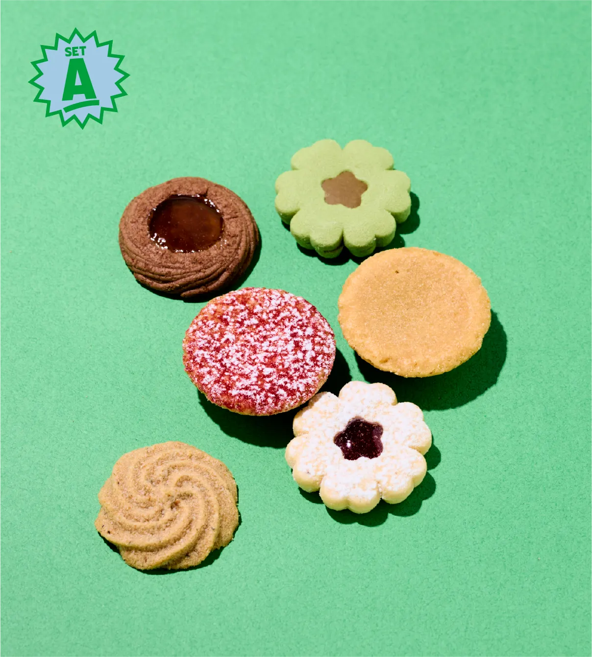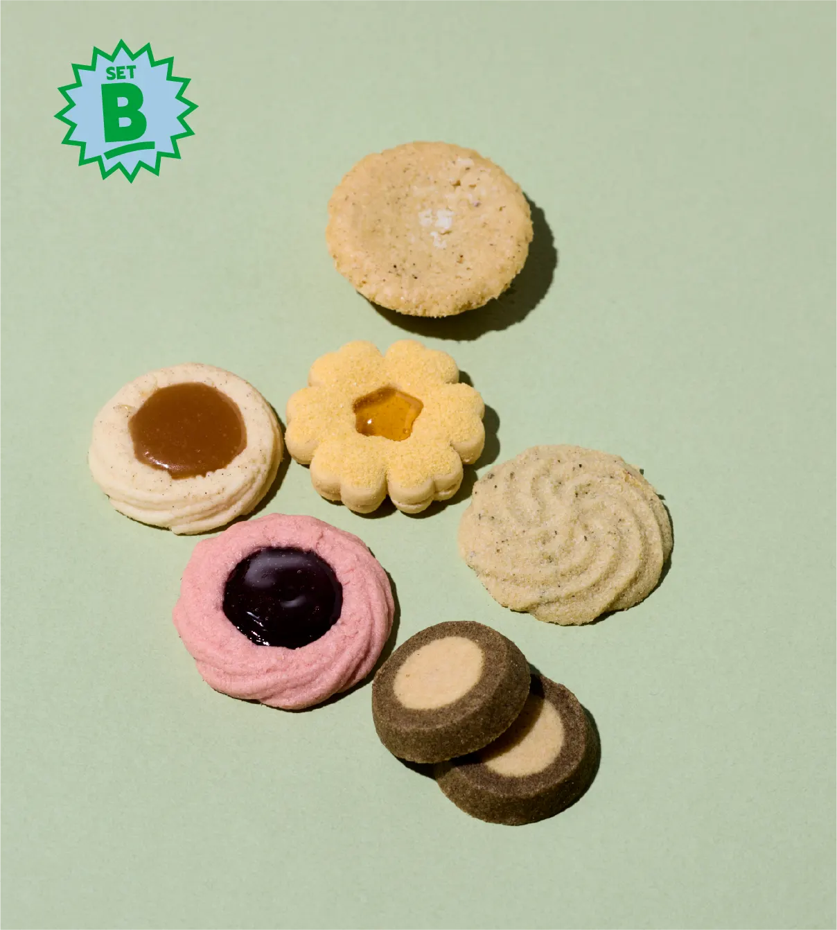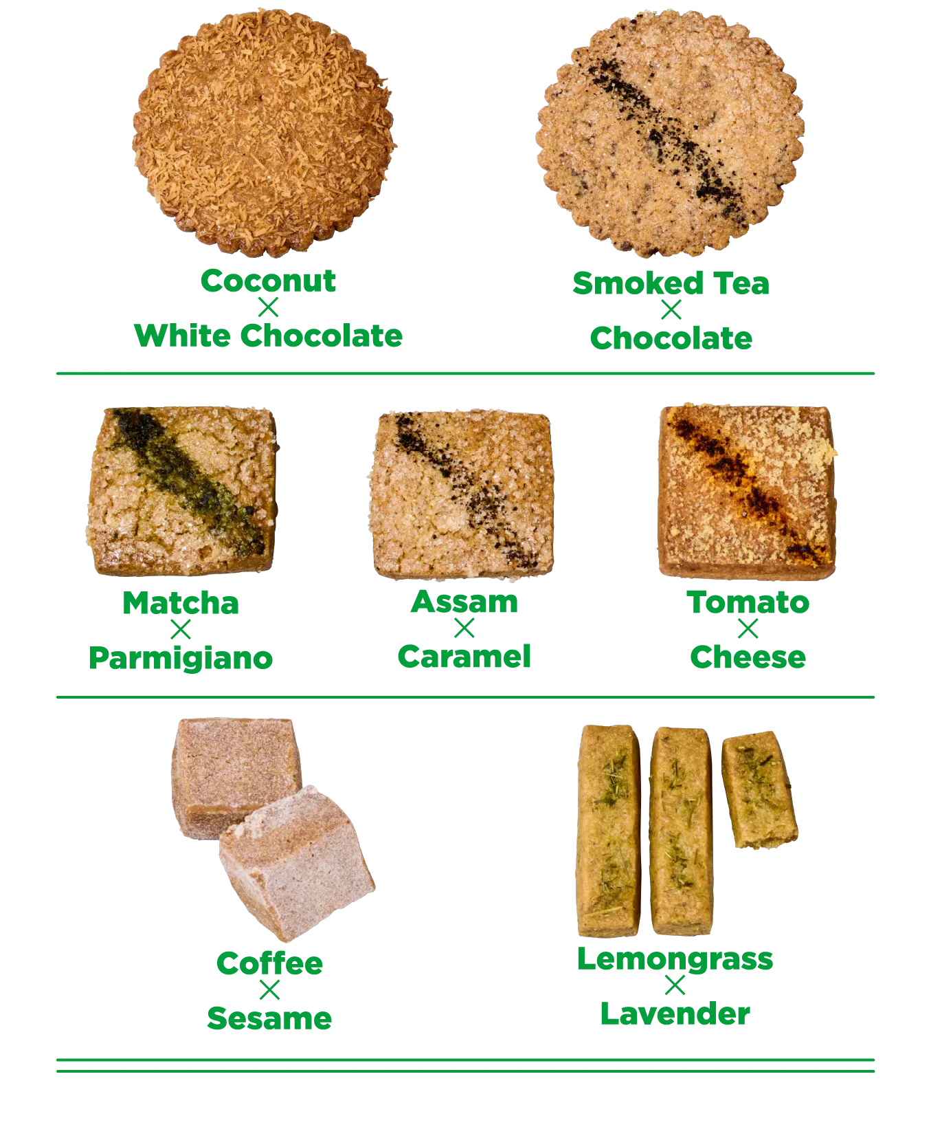 2つの素材から生まれる味わいと食感のハーモニーに着目して作った7種類のクッキーを少量サイズでご用意しました。甘さ、しょっぱさ、ほろ苦さなど、それぞれの個性を味わって。