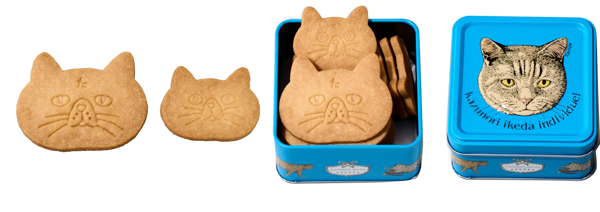 池田シェフの愛猫がモチーフになった愛らしい表情の猫型サブレは、北海道産バターを使ったシンプルで奥行きのある味わい。サクッ、ホロッとした口どけの良さも魅力。