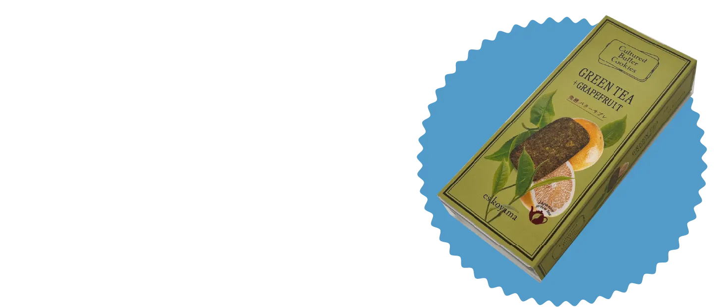 発酵バターのリッチで深いコク、丹波在来の緑茶ならではの青々しい風味、そしてグレープフルーツの酸味。それぞれが持っていない要素を補い合うような、美しい味覚バランスが魅力。サクッ、ホロッとほどける軽やかな食感も相まって、手が止まらなくなりそうです。