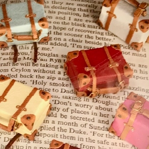 中箱を組み立て、本革を貼った後、 コーナー革・持ち手・ベルト・ベルト留めを作り接着します。