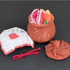 タコを粘土で作って、たこ飯の器に盛り付けて完成させます。