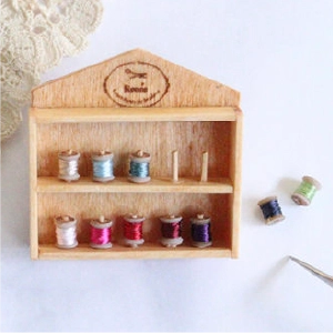 木製キットのハウス型の糸巻スタンドを組み立てて塗装。糸巻きに糸を巻き、糸巻のハウスに立てて遊びます。