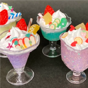選んでいただいたお色のジェーリーを入れ、その上にホイップを絞ります。トッピングしたいアイスやクッキーなどを制作、その他のフルーツやキラキラ材料などをデコレーションして、オリジナルパフェをひとつ完成させます。