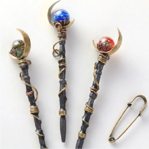 とんぼ玉作家でもある春木弘が制作したガラス玉と真鍮のパーツを選び木製の杖棒を削り塗装、真鍮の針金を巻いてデコレーションします。