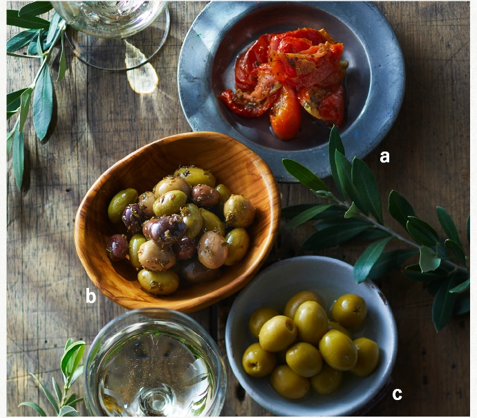 プロヴァンスの香りを感じる様々なオリーブマリネをご用意。