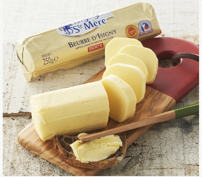 ノルマンディーで作られたA.O.P認定(原産地呼称統制)の発酵バター。バターを生かしたサブレも。