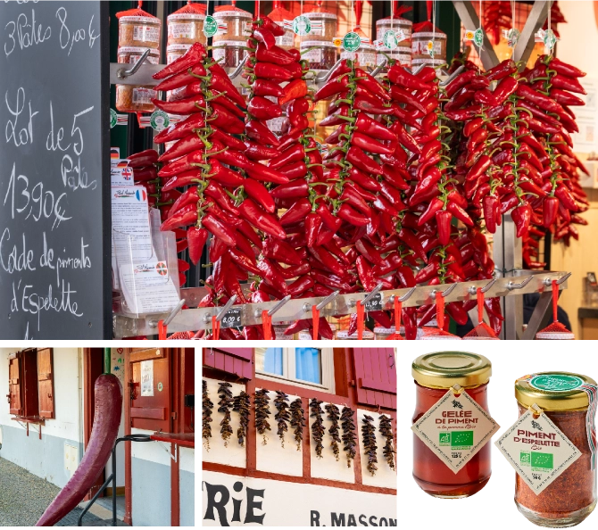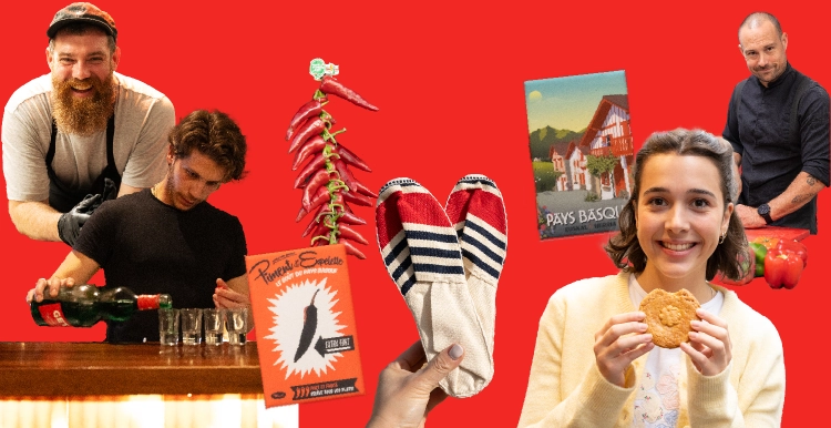白壁の家の軒先に赤い唐辛子が吊るされた美しい景観で知られるエスペレット村。ここでバスク料理に欠かせない唐辛子・エスペレットが生産されています。バスクの代表的な料理と言えば、トマトや玉ねぎ、ピーマンなどの野菜のおいしさを引き立てるピペラード。エスペレットはコショウの代わりに料理のアクセントとして使われます。会場ではピペラードをアレンジした料理のほか、エスペレットをモチーフにしたアイテムも登場します。