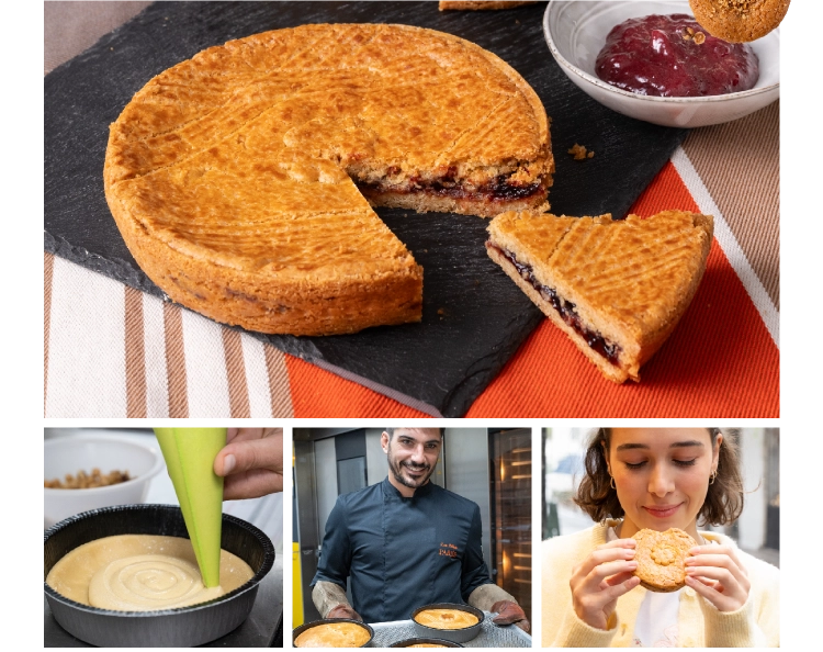 サクサクの生地にカスタードクリームやブラックチェリーのジャムが詰まったバスクの伝統菓子。元々は日曜日のミサの後に家族で食べるものでしたが、今では朝食からデザートまであらゆるシーンで楽しまれる定番のお菓子です。ガトーバスク発祥の地と言われる温泉地カンボ・レ・バンではバスクの美食と文化を祝うガトーバスク祭が毎年開催されたり、内陸部サール村にはガトーバスクの博物館があったり、バスクにはその文化が深く根付いています。
