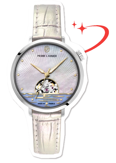 サンライズを表現した文字盤にきらめく白蝶貝のグラデーションを施して。