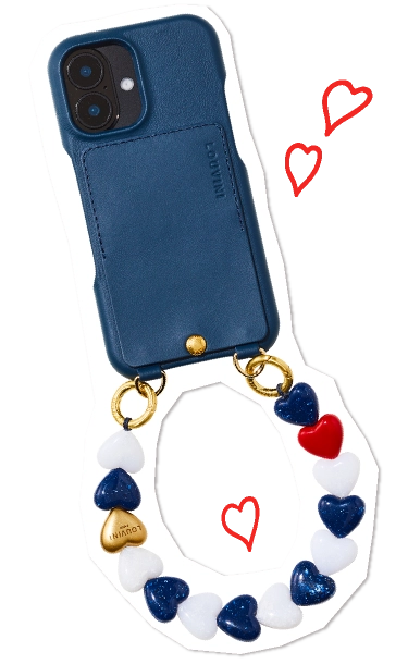 ハートのモチーフがかわいい樹脂製ハンドストラップはアクセサリー感覚で。