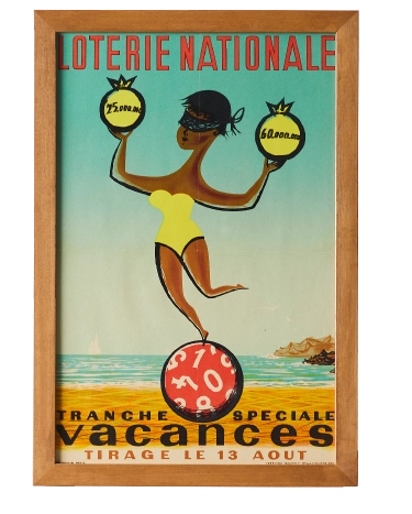 1960年代に発売された宝くじの広告。ポップなアートをインテリアに。