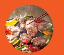 赤身と脂肪のバランスが良い柔らかな肉質。オリジナルタレと絡めて、お好み野菜と一緒に。