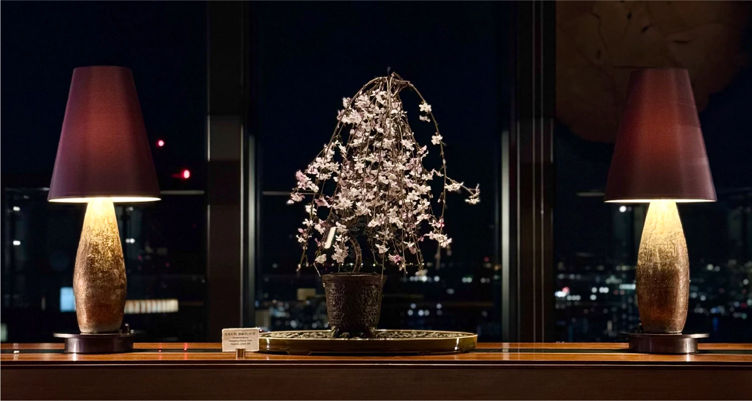 春なら桜、秋には紅葉など季節感のある盆栽を置くことで、常に新鮮な空間を提供し、日本の四季を感じさせることで観る人を楽しませる。盆栽は屋外で育てるものだが、室内に展示することで生育環境の変化を伴うため、数日での入れ替えや手入れなど、とても手間がかかる。しかし、盆栽の文化を守る、次の世代に残すという使命感から、盆栽愛好家に向けてではなく、盆栽を未だ知らない多くの人々の目に触れる場所に展示し、盆栽の魅力に触れてもらうことに意欲的だ。