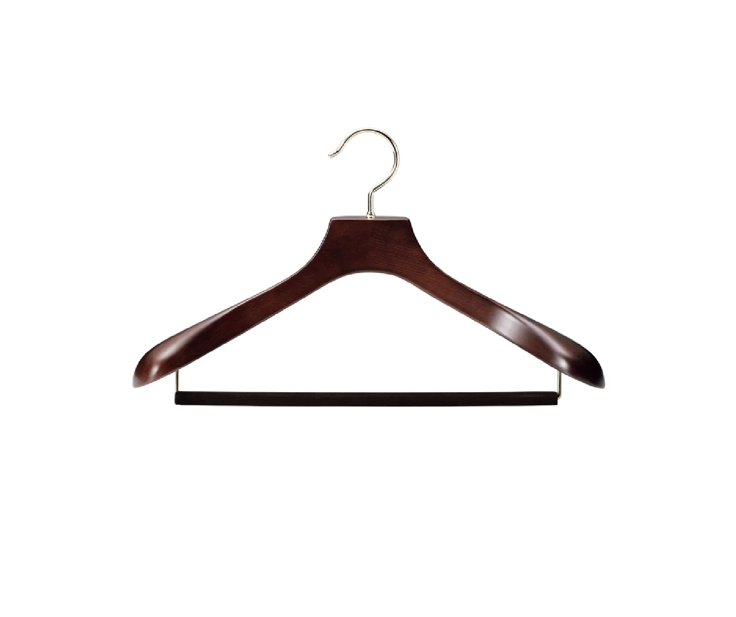 スーツの型崩れを防ぐ、計算された湾曲と肩先の厚み。パンツも掛けられるフェルトバーを備えた、大切な一着を長く愛用するためのスタンダード。