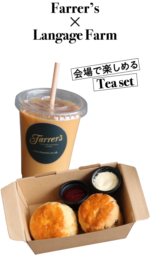 「ファーラーズ」の紅茶とスコーン、「ランゲージファーム」のクロテッドクリームを会場で味わえるセット!