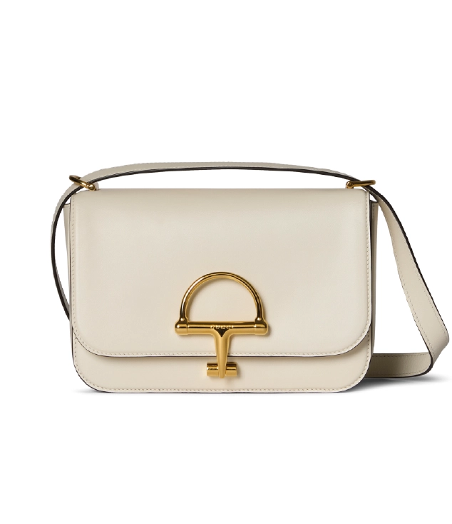 2025年秋冬 コレクションのファッションショーで新しく登場した“グッチ シエナ”ショルダーバッグ。スムースレザーで仕立てたかっちりとしたシルエットに、1970年代に生まれた象徴的なディテールであるハーフ ホースビットのクラスプがアクセントを添えています。
