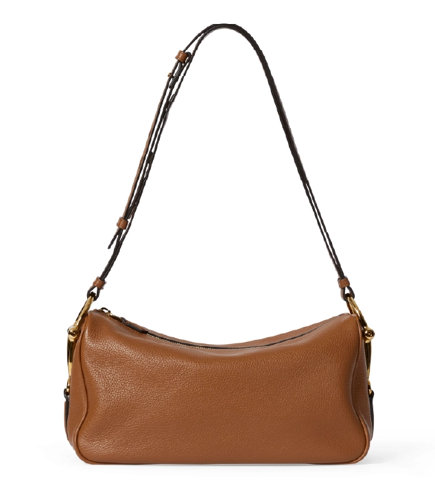 ショルダーストラップのハードウェアにグッチのアイコニックなホースビット モチーフがあしらわれたハンドバッグ。ブラウンのスムースレザーで仕立てられています。