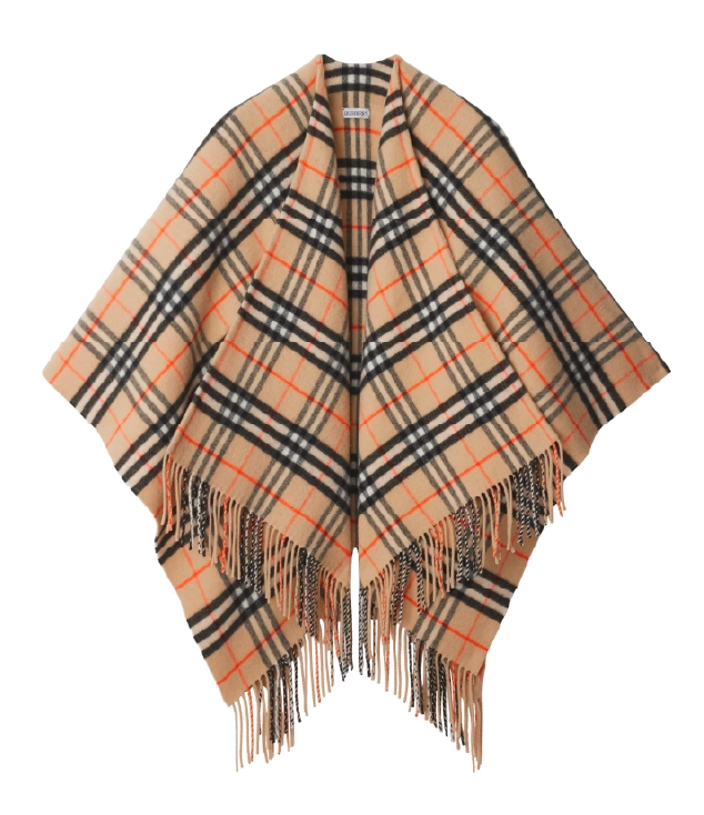 ライトウェイトのウーヴンウールカシミヤを使用したバーバリーチェックのケープ。スコットランドにある創業200年の紡績工場で製作しました。地元の天然水で洗浄し、さらに2度の洗浄を加えることで、起毛効果が働き、うっとりするような柔らかさに。着回し力抜群のスタイルが揃う「バーバリー」クラシックからのアイテムです。