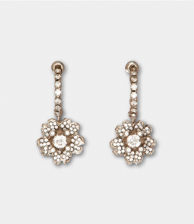 アイコニックなストラスフラワーのペンダントを飾った華やかでエレガントなピアス。ホリデーシーズンの装いにプレシャスな輝きをプラスします。