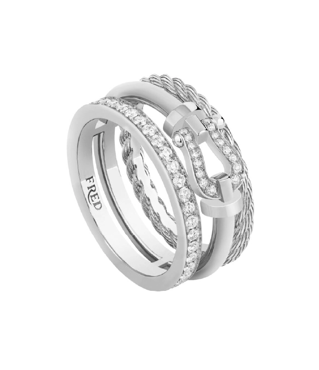 メゾンを象徴するバックル、コードケーブル、ダイヤモンドの3つの完璧な調和により、大胆でフェミニンな輝きを放つ“フォース10 ライズ”コレクション。サンシャイン・ジュエラーとして「フレッド」の個性がきらめき、共鳴する新しいクリエーションです。既存の“フォース10”との重ね付けもおすすめです。