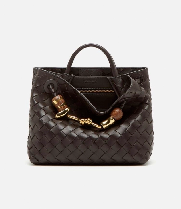 アイコニックなノットディテールをあしらった、しなやかなイントレチャートレザーのトップハンドルバッグです。スライド式クロスボディストラップが付いています。