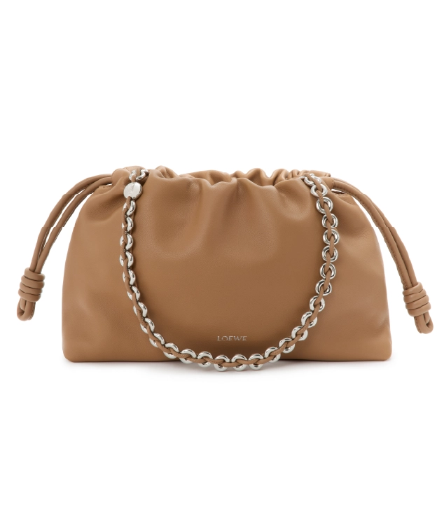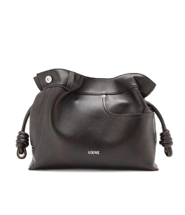 ソフトでしなやかなフラメンコクラッチ。シグネチャーであるコイル状の結び目で仕上げられたドローストリングで開閉が可能。シャイニーカーフスキンを採用したミディアムサイズです。