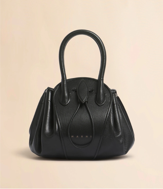 博愛が花言葉のチューリップから着想を得た“TULIPEA”スモールバッグ。チューリップのつぼみがそっと花開く瞬間を思わせるシルエットが特徴的。ほどよい光沢のある柔らかな質感のバッファローレザーを使用。開口部はドローストリング仕様、取り外し可能なショルダーストラップが付いています。
